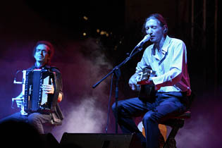 In occasione della NotteNera i Mercanti hanno scelto una formazione speciale, piu' "intima": la voce e la chitarra di Lorenzo, accompagnate soltanto dalla melodia della fisarmonica di Piero, daranno vita ad una esibizione piu' teatrale e sussurrata, che meglio si inserisce nello spirito dell'iniziativa. Due compagni di strada che proveranno, con la musica, a farci perdere nella notte.